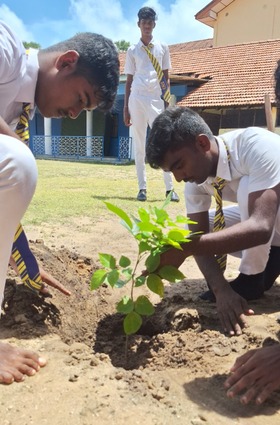 The commitment of the Sathya Sai devotees to the environment did not stop there – the older students extended the project even further. On 4 November 2024, they collaborated with students from Yarlton College, Karainagar, to plant 30 more trees—such as mahogany, Terminalia arjuna (Arjun tree; locally known as Marutha maram or Kumbuk) and pongame oiltree—enriching the school’s playground with greenery.