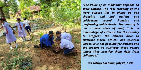 The Sri Sathya Sai International Organization of Sri Lanka highlights the profound engagement of two schools from the Northern Region of Sri Lanka in the SAI100 Tree planting initiative.
